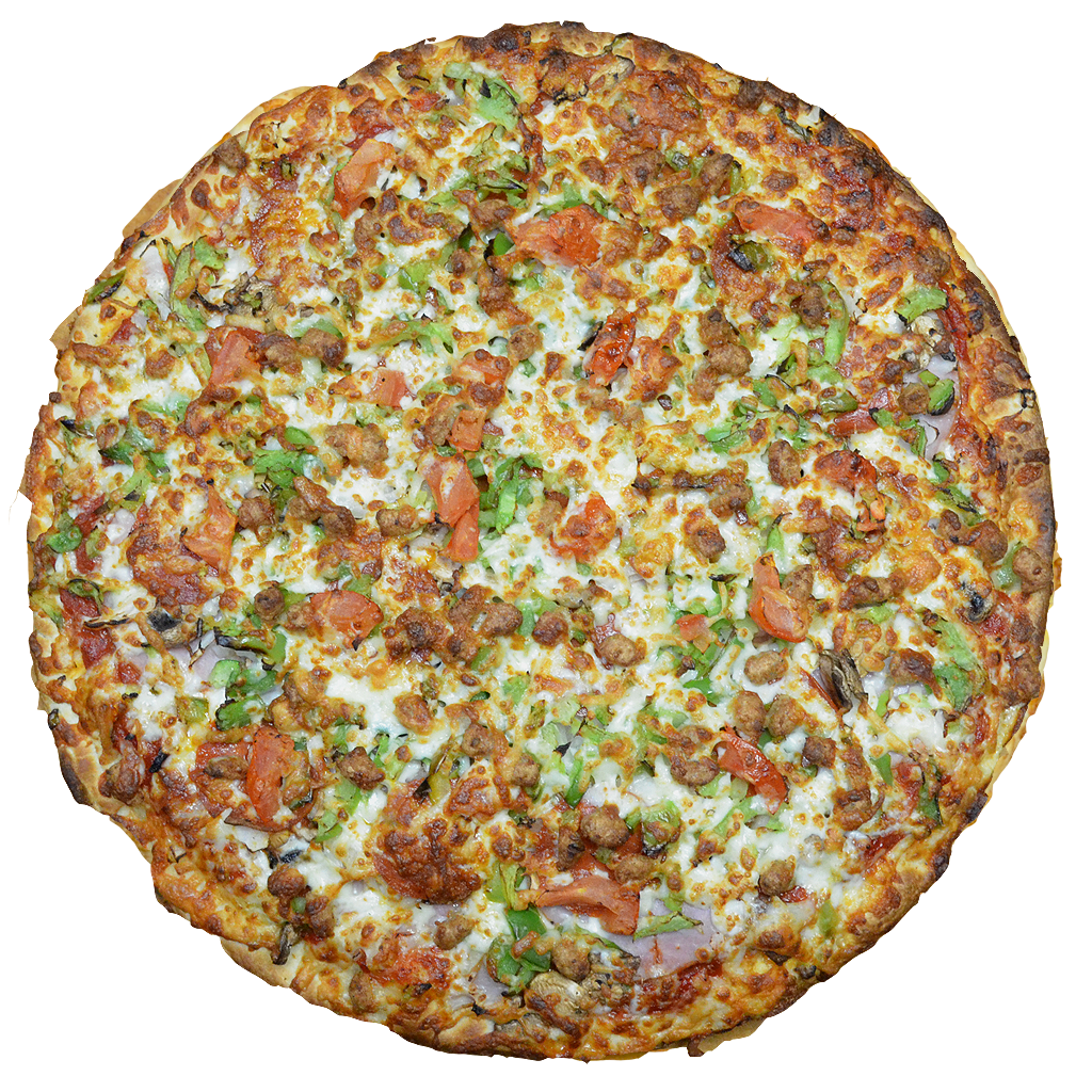 Paneer tikka-inspired pizza with Indian gravy, veggies, and mozzarella.